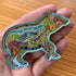 Before every piece, she researches the animal: its habitat, what threatens its survival, the delicate ecosystem keeping it alive. Then, working from the center outward, she hand-draws the interconnectedness – hidden animals, weather patterns, environmental symbols woven throughout each intricate design.