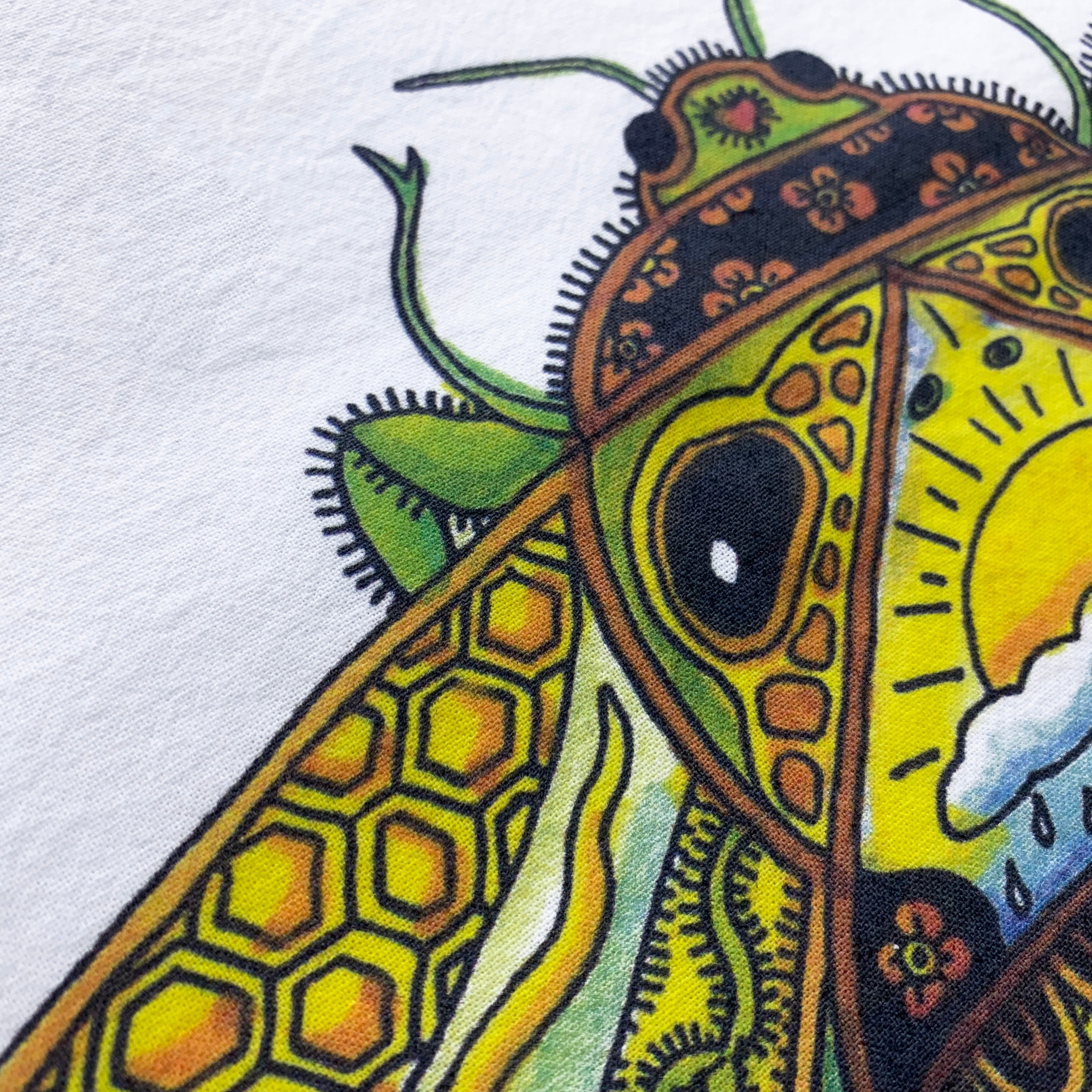 Before every piece, she researches the animal: its habitat, what threatens its survival, the delicate ecosystem keeping it alive. Then, working from the center outward, she hand-draws the interconnectedness – hidden animals, weather patterns, environmental symbols woven throughout each intricate design.
