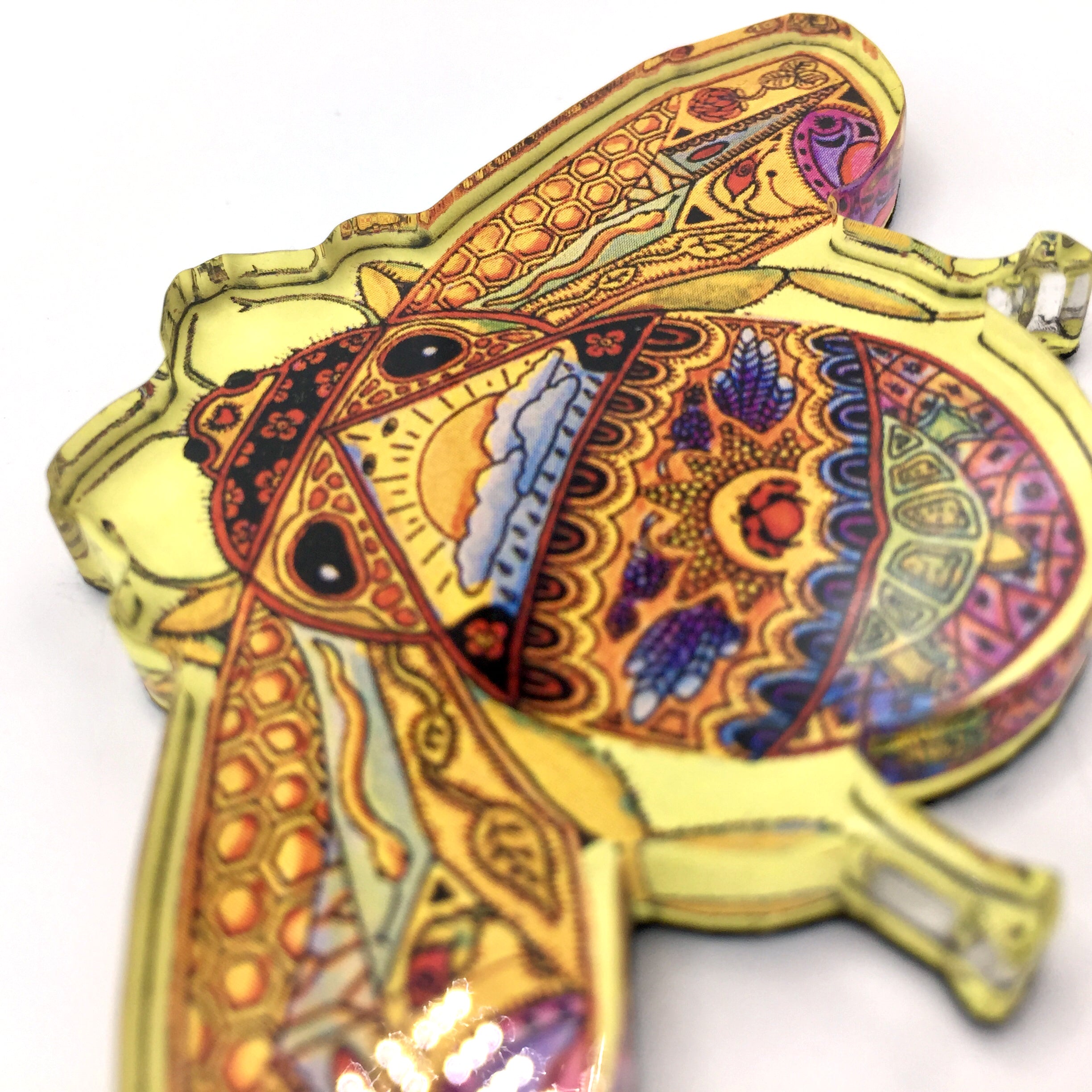 Magnets, Keychains and Pins are acrylic and made in the USA.