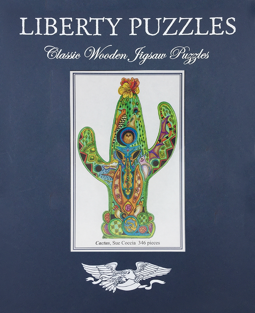 Each puzzle box is signed by Sue and includes a descriptive notecard.
