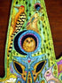 Before every piece, she researches the animal: its habitat, what threatens its survival, the delicate ecosystem keeping it alive. Then, working from the center outward, she hand-draws the interconnectedness – hidden animals, weather patterns, environmental symbols woven throughout each intricate design.