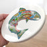 Before every piece, she researches the animal: its habitat, what threatens its survival, the delicate ecosystem keeping it alive. Then, working from the center outward, she hand-draws the interconnectedness – hidden animals, weather patterns, environmental symbols woven throughout each intricate design.