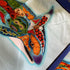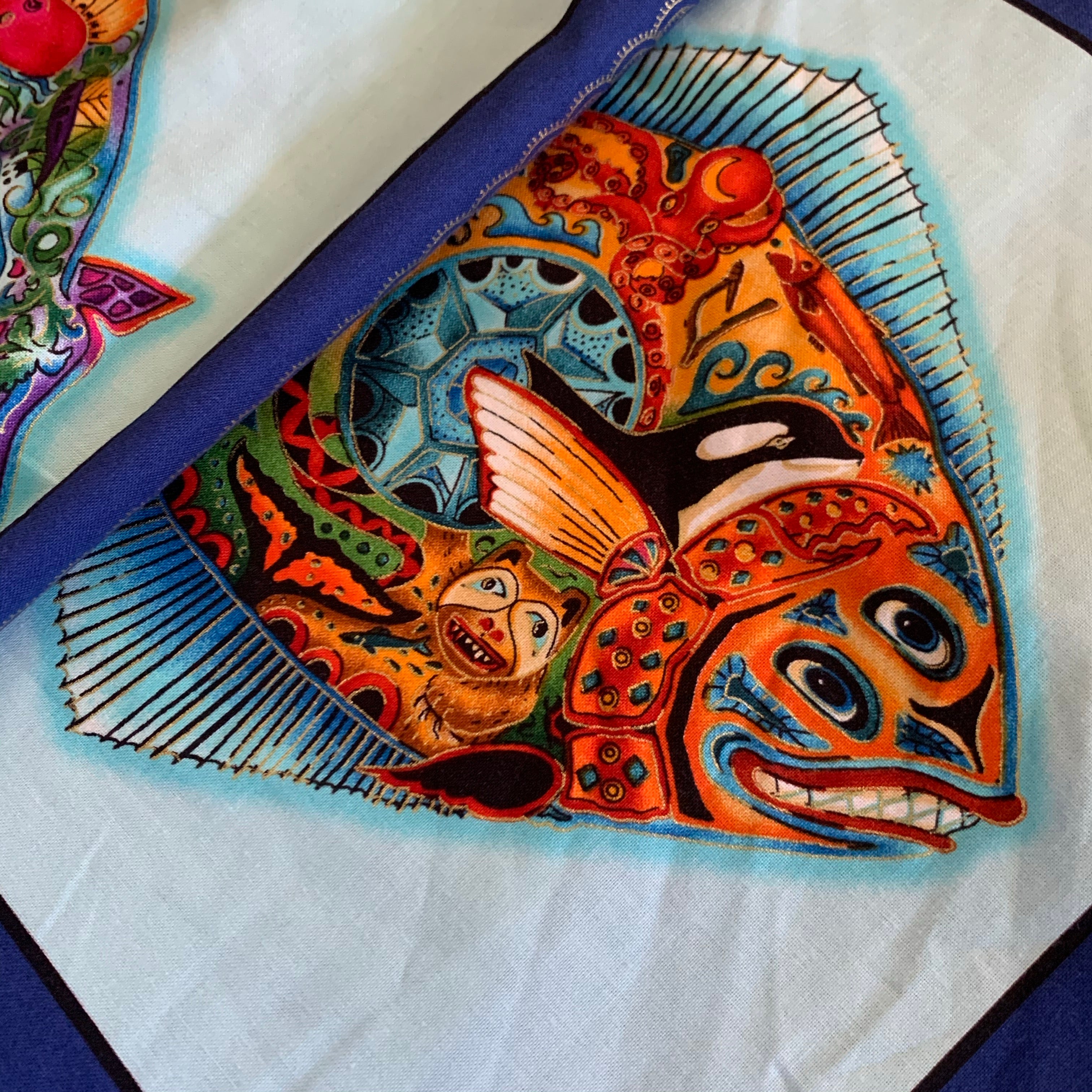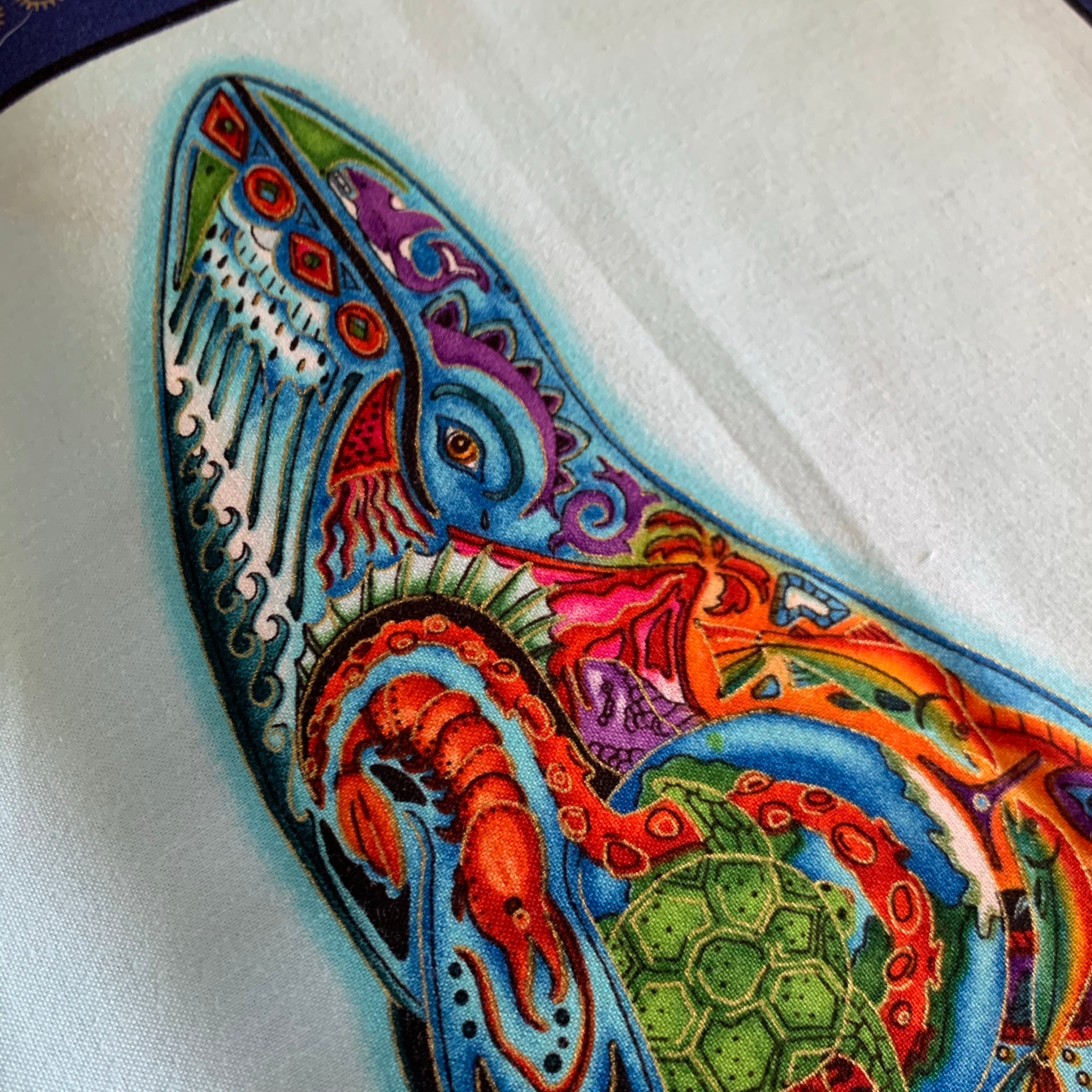 Before every piece, she researches the animal: its habitat, what threatens its survival, the delicate ecosystem keeping it alive. Then, working from the center outward, she hand-draws the interconnectedness – hidden animals, weather patterns, environmental symbols woven throughout each intricate design.