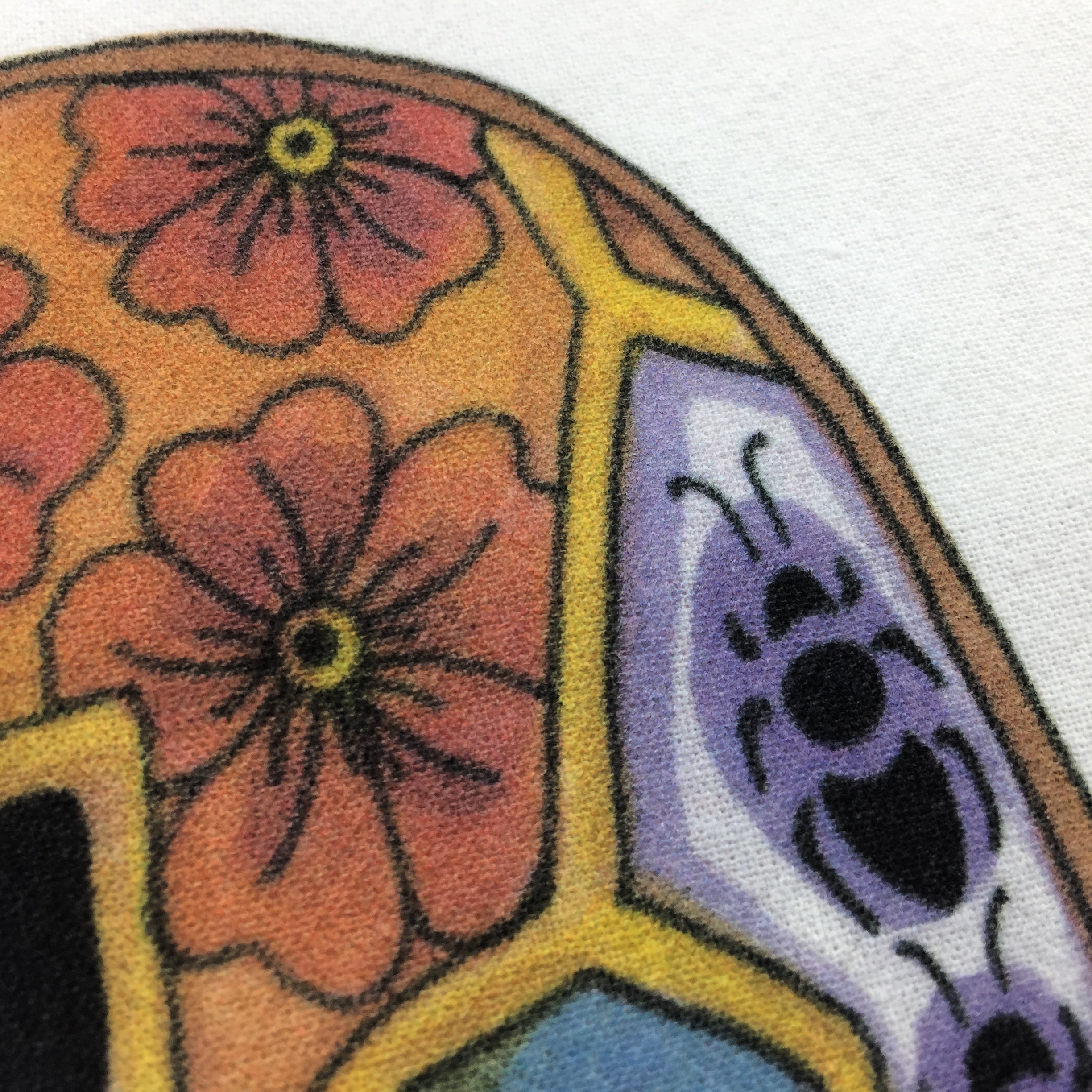 Before every piece, she researches the animal: its habitat, what threatens its survival, the delicate ecosystem keeping it alive. Then, working from the center outward, she hand-draws the interconnectedness – hidden animals, weather patterns, environmental symbols woven throughout each intricate design.