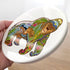 Before every piece, she researches the animal: its habitat, what threatens its survival, the delicate ecosystem keeping it alive. Then, working from the center outward, she hand-draws the interconnectedness – hidden animals, weather patterns, environmental symbols woven throughout each intricate design.