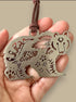 Original art ornament is made of 2mm stainless steel strung with colored cords.