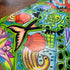 Before every piece, she researches the animal: its habitat, what threatens its survival, the delicate ecosystem keeping it alive. Then, working from the center outward, she hand-draws the interconnectedness – hidden animals, weather patterns, environmental symbols woven throughout each intricate design.