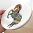 Before every piece, she researches the animal: its habitat, what threatens its survival, the delicate ecosystem keeping it alive. Then, working from the center outward, she hand-draws the interconnectedness – hidden animals, weather patterns, environmental symbols woven throughout each intricate design.