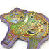 Before every piece, she researches the animal: its habitat, what threatens its survival, the delicate ecosystem keeping it alive. Then, working from the center outward, she hand-draws the interconnectedness – hidden animals, weather patterns, environmental symbols woven throughout each intricate design.