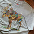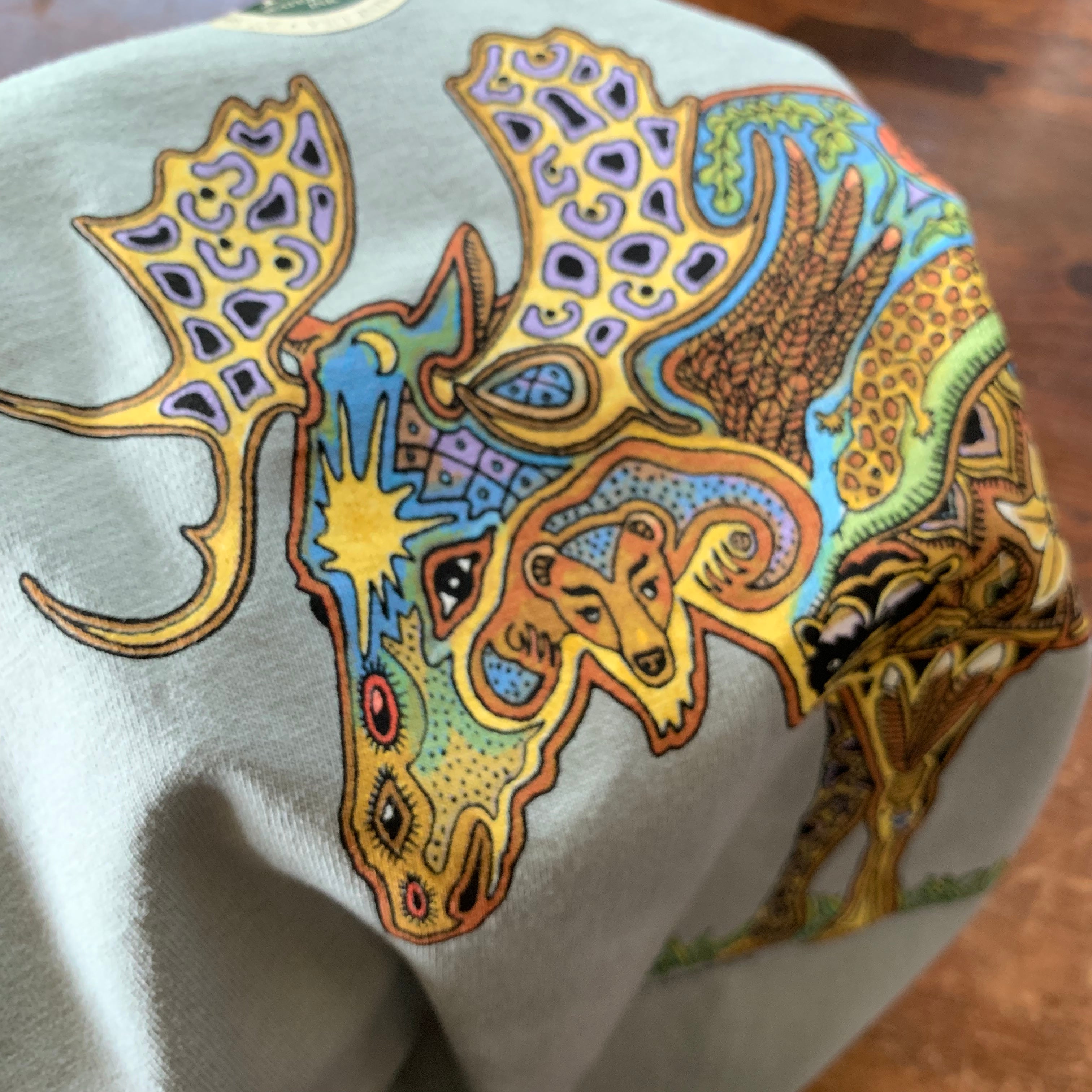 Before every piece, she researches the animal: its habitat, what threatens its survival, the delicate ecosystem keeping it alive. Then, working from the center outward, she hand-draws the interconnectedness – hidden animals, weather patterns, environmental symbols woven throughout each intricate design.