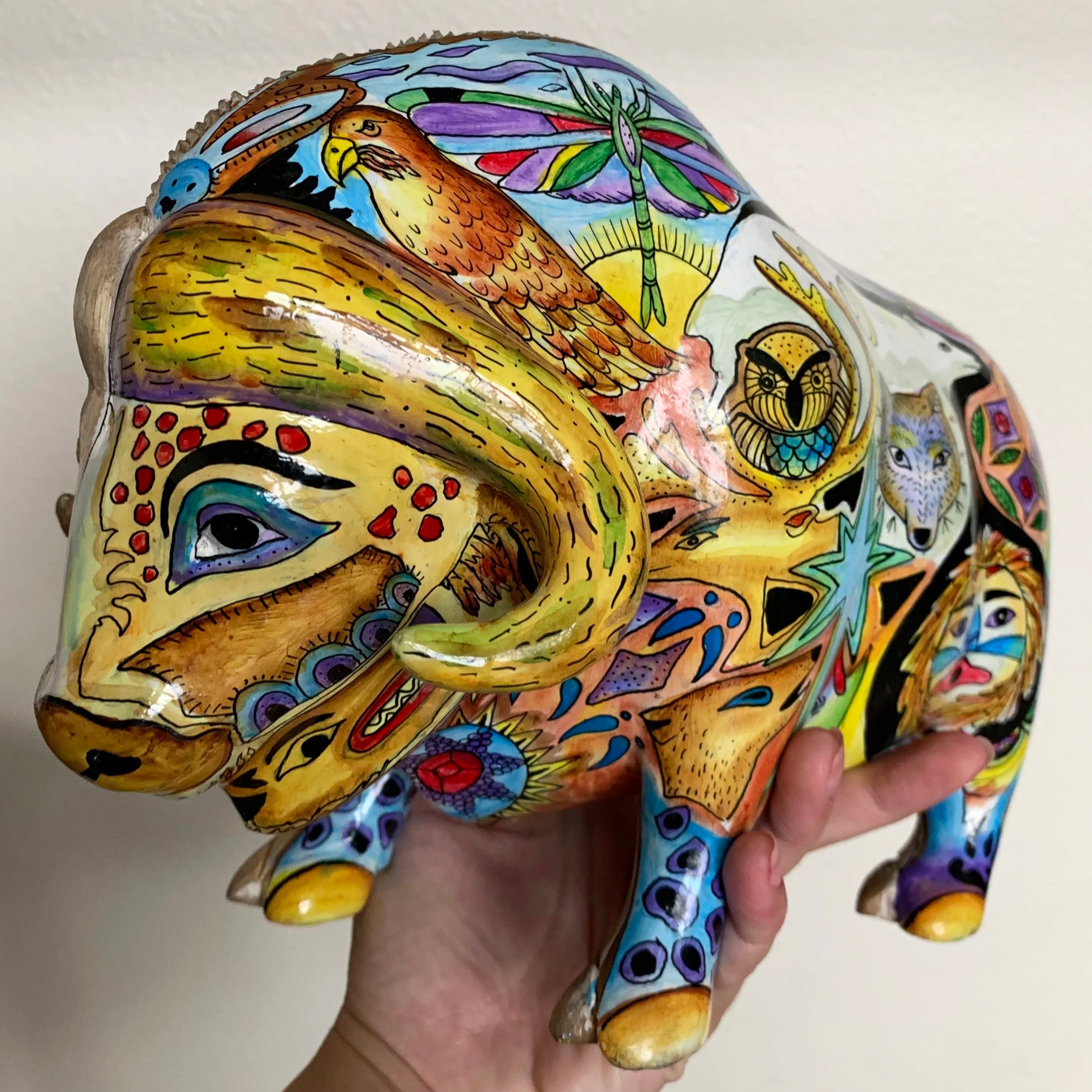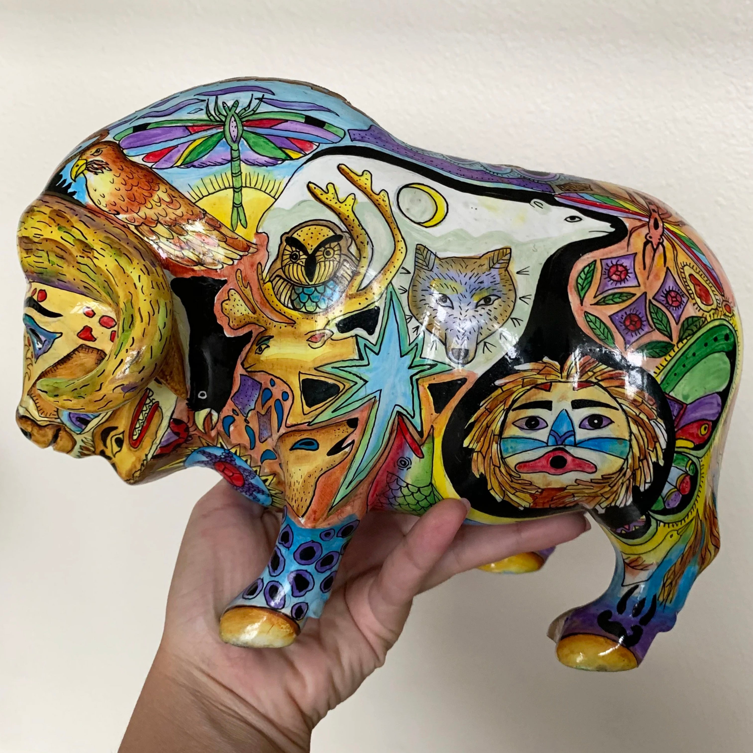 Each piece takes days, sometimes weeks. No AI. No digital shortcuts. Just Sue crafting with deliberate, reverent slowness for wildlife that deserves our full attention.