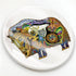 Before every piece, she researches the animal: its habitat, what threatens its survival, the delicate ecosystem keeping it alive. Then, working from the center outward, she hand-draws the interconnectedness – hidden animals, weather patterns, environmental symbols woven throughout each intricate design.