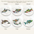Before every piece, she researches the animal: its habitat, what threatens its survival, the delicate ecosystem keeping it alive. Then, working from the center outward, she hand-draws the interconnectedness – hidden animals, weather patterns, environmental symbols woven throughout each intricate design.