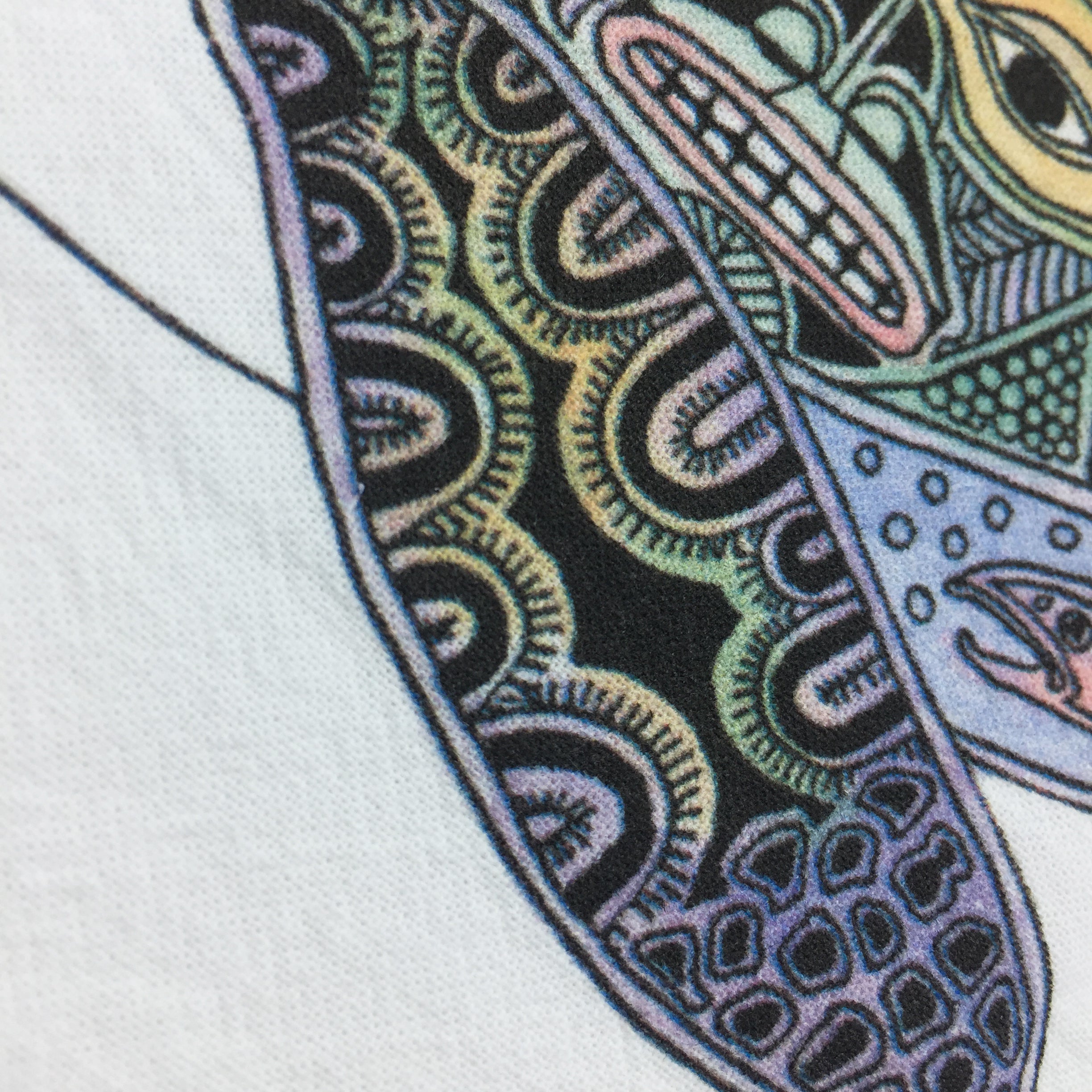 Before every piece, she researches the animal: its habitat, what threatens its survival, the delicate ecosystem keeping it alive. Then, working from the center outward, she hand-draws the interconnectedness – hidden animals, weather patterns, environmental symbols woven throughout each intricate design.