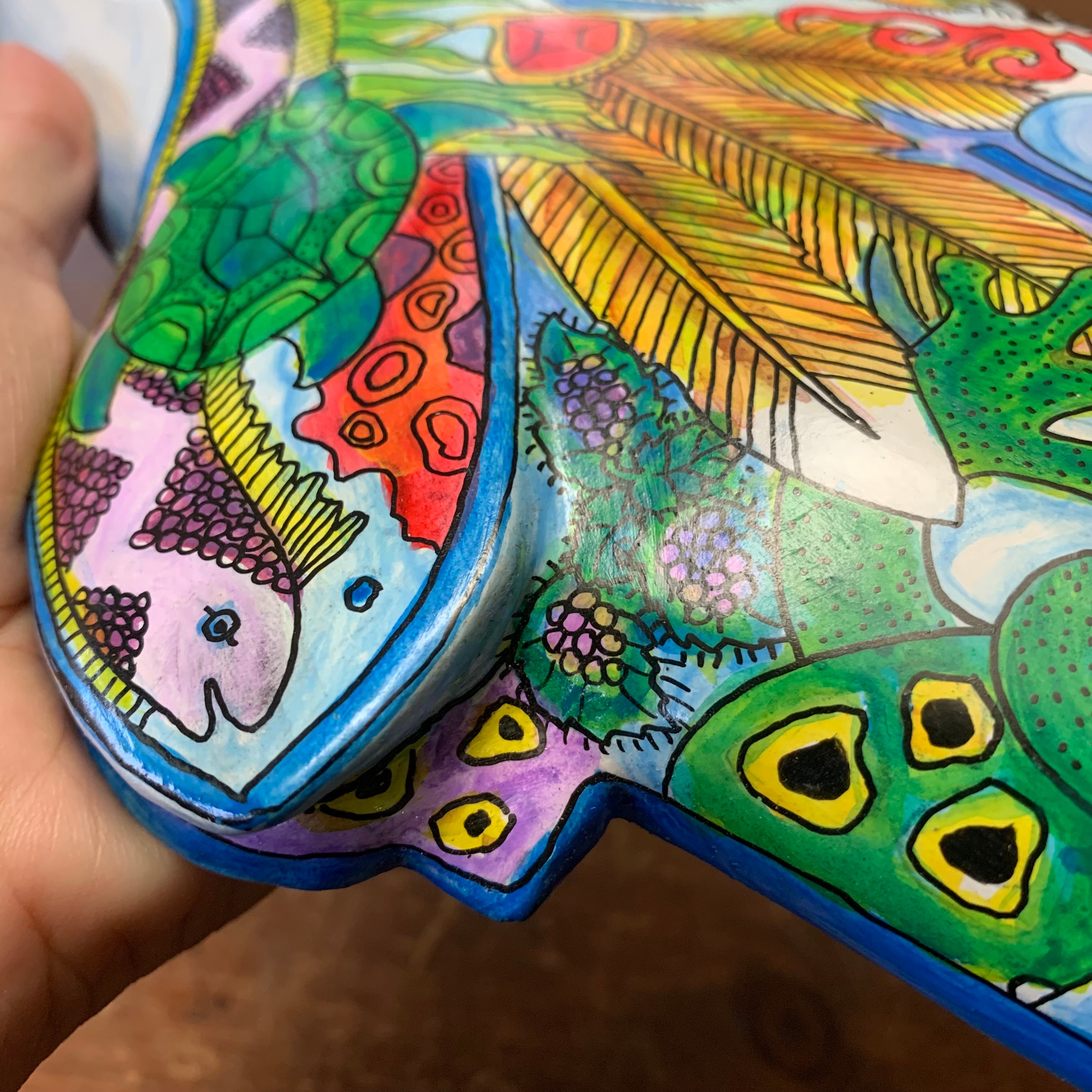 - Hand carved and painted