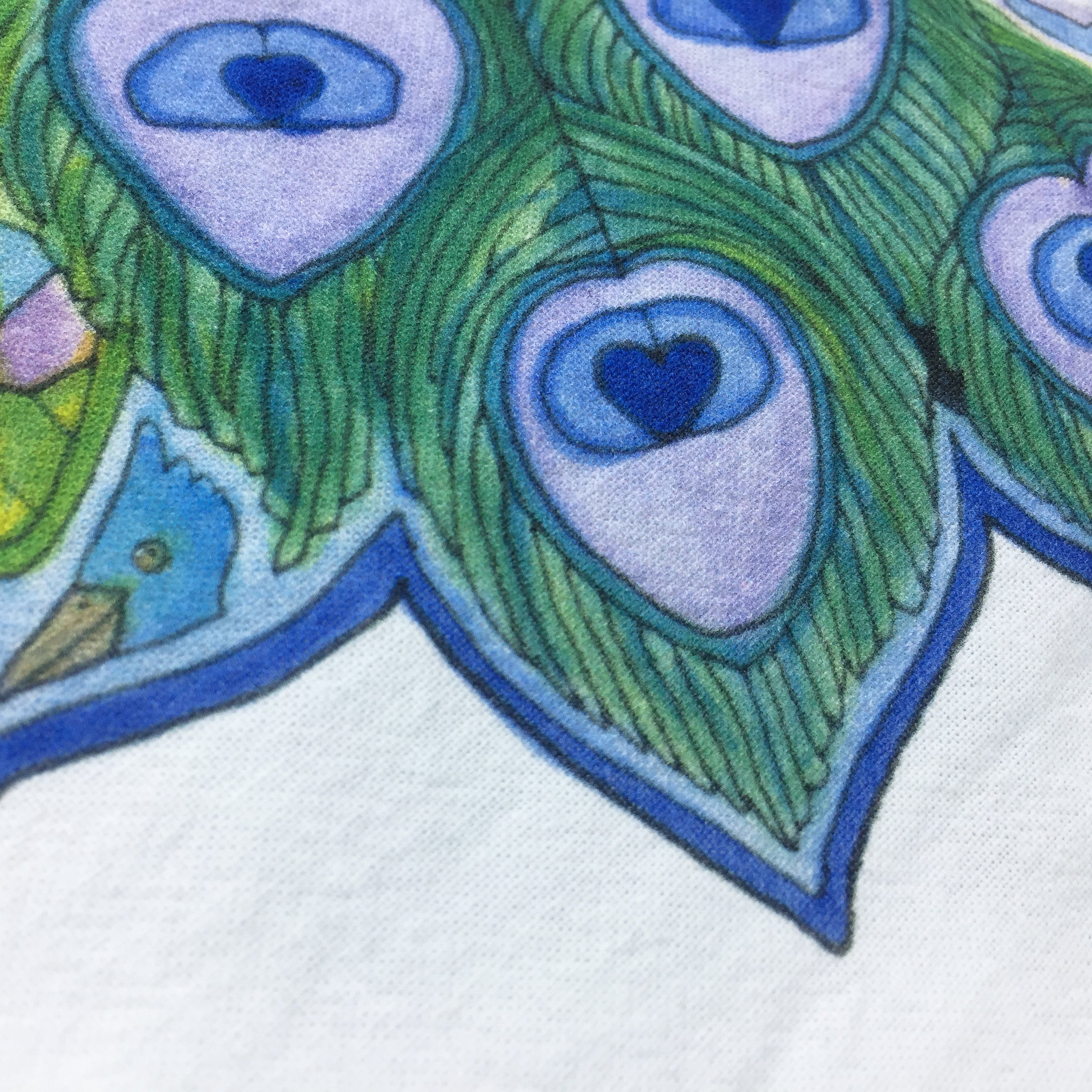 Before every piece, she researches the animal: its habitat, what threatens its survival, the delicate ecosystem keeping it alive. Then, working from the center outward, she hand-draws the interconnectedness – hidden animals, weather patterns, environmental symbols woven throughout each intricate design.