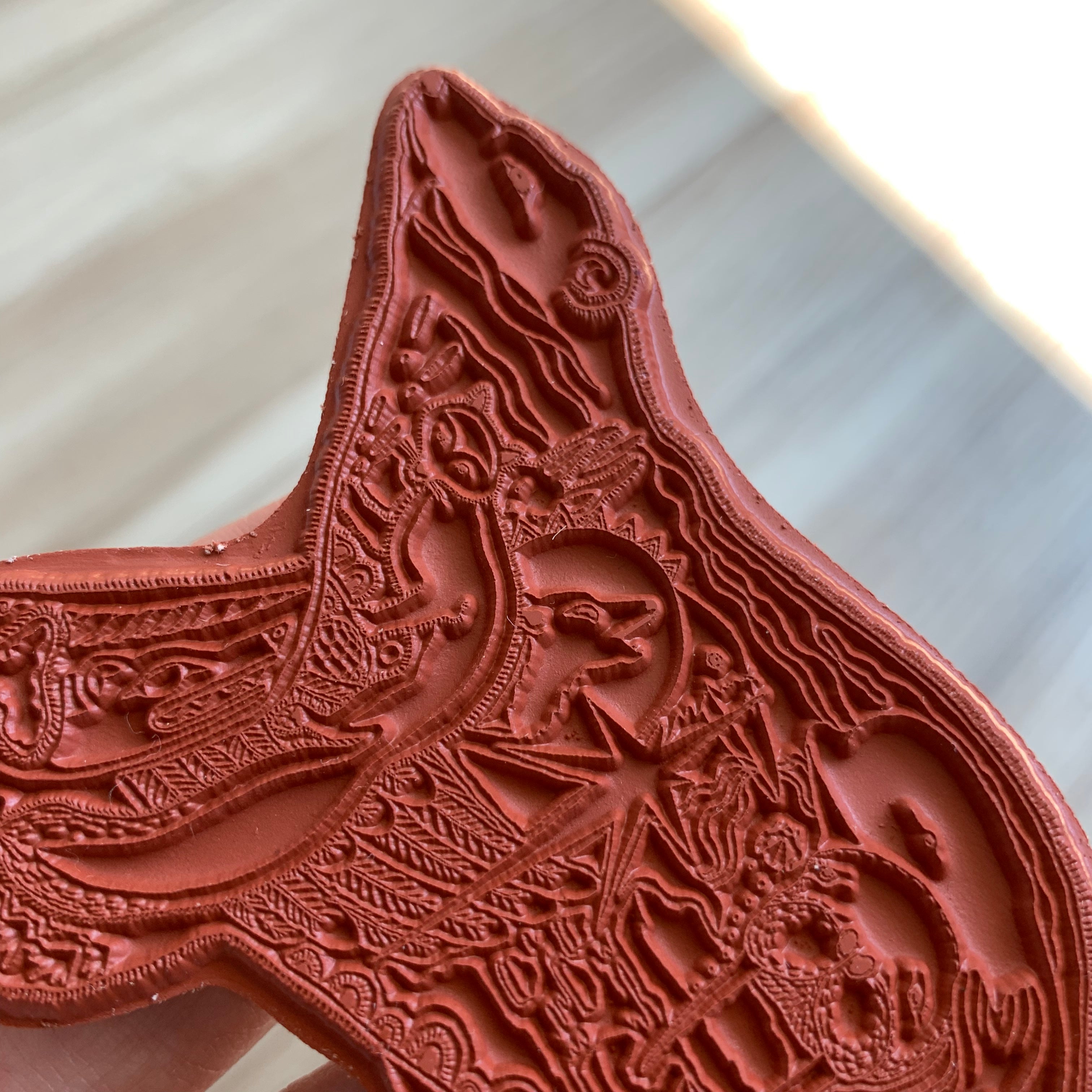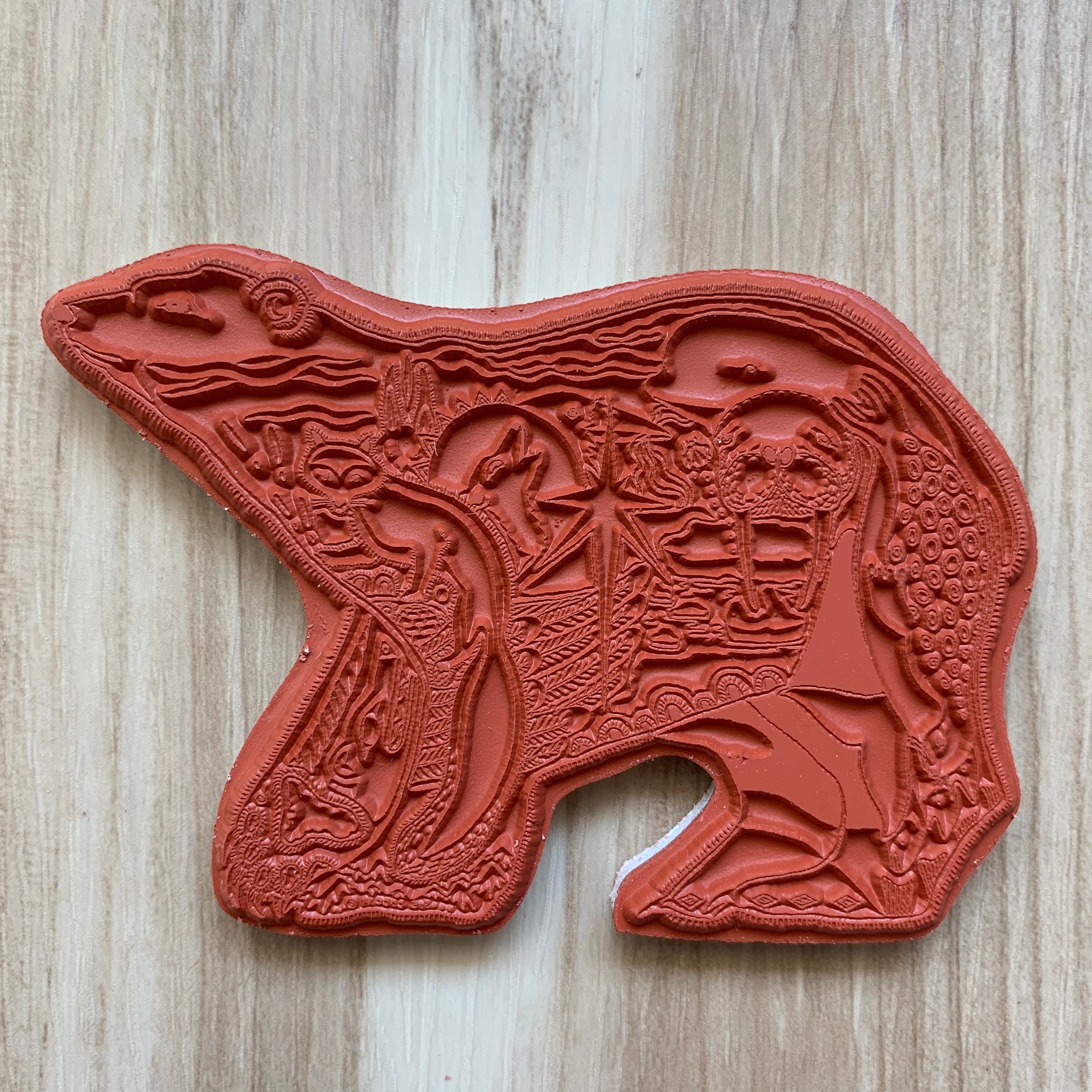 Before every piece, she researches the animal: its habitat, what threatens its survival, the delicate ecosystem keeping it alive. Then, working from the center outward, she hand-draws the interconnectedness – hidden animals, weather patterns, environmental symbols woven throughout each intricate design.