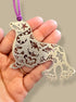 Original art ornament is made of 2mm stainless steel strung with colored cords.