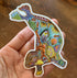 Before every piece, she researches the animal: its habitat, what threatens its survival, the delicate ecosystem keeping it alive. Then, working from the center outward, she hand-draws the interconnectedness – hidden animals, weather patterns, environmental symbols woven throughout each intricate design.