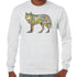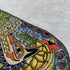 Before every piece, she researches the animal: its habitat, what threatens its survival, the delicate ecosystem keeping it alive. Then, working from the center outward, she hand-draws the interconnectedness – hidden animals, weather patterns, environmental symbols woven throughout each intricate design.